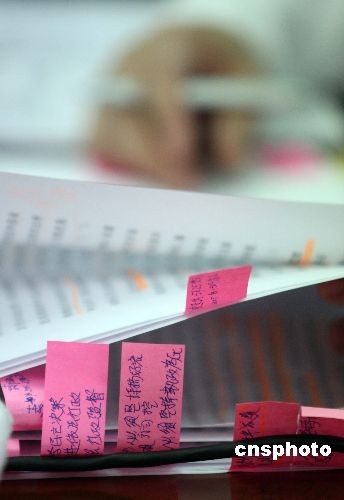3月5日,出席十一屆全國(guó)人大一次會(huì)議的澳門(mén)代表團(tuán)舉行全體會(huì)議,審議政府工作報(bào)告。一位代表審議報(bào)告一絲不茍,將自己的看法寫(xiě)在小紙條上,粘貼在報(bào)告文件有關(guān)段落旁,以供審議發(fā)言時(shí)引用。中新社發(fā) 張宇 攝