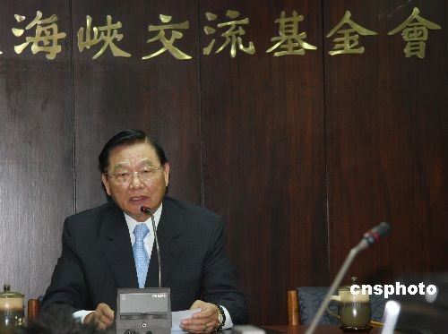10月21日中午,臺灣;鶗麻L江丙坤召開臨時記者會,譴責暴力襲擊來臺灣進行學術(shù)訪問的海協(xié)會副會長、廈門大學傳播學院院長張銘清。中新社發(fā) 耿軍 攝