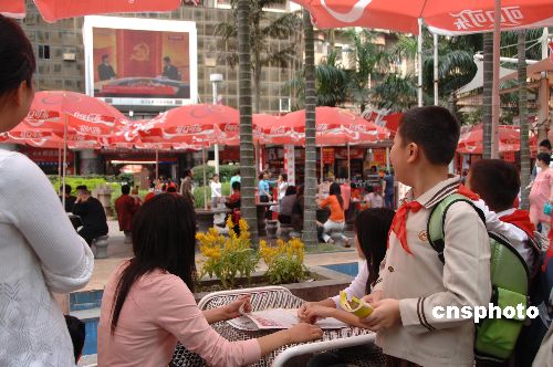 10月22日,路人駐足福州臺(tái)江步行街,觀看中央電視臺(tái)現(xiàn)場(chǎng)直播的十七屆中共中央政治局常委同中外記者見(jiàn)面實(shí)況。中新社發(fā) 鄭祚聲 攝