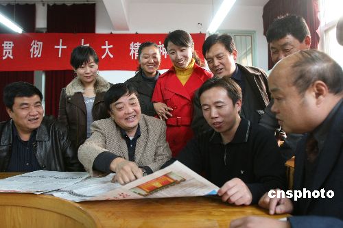 10月23日,河南省開封市文化藝術(shù)學(xué)校的黨員干部正聚在一起學(xué)習(xí)貫徹“十七大”會議精神。中國共產(chǎn)黨第十七次全國代表大會剛剛閉幕,河南省開封市各界黨員干部和群眾迅速掀起學(xué)習(xí)貫徹十七大精神的熱潮,大家紛紛表示要以十七大精神為動力推動當(dāng)前工作,堅持開拓進(jìn)取、不斷創(chuàng)新,譜寫人民美好生活新篇章。中新社發(fā) 凱楓 攝