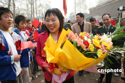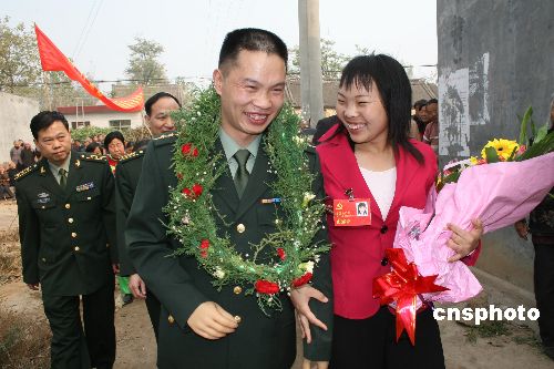 10月23日,出席黨的十七大的河南代表團(tuán)代表吳新芬回到家鄉(xiāng)禹州市朱閣鄉(xiāng)邊樓村,受到家鄉(xiāng)父老的熱情歡迎,當(dāng)日她就把黨的十七大的精神與鄉(xiāng)親們分享。十七大代表吳新芬,是一名來(lái)自河南省禹州市朱閣鄉(xiāng)邊樓村的軍人媳婦。1998年,大學(xué)畢業(yè)不久,當(dāng)她得知西藏某部邊防軍官王俊景在執(zhí)行任務(wù)時(shí)被高壓電擊成重傷,便毅然辭去工作,跑到醫(yī)院照顧,不久后兩人成為伴侶。此后10年,她和丈夫共用一雙手,一起跨越常人難以想象的重重困難,艱苦而幸福地生活。中新社發(fā) 牛書培 攝