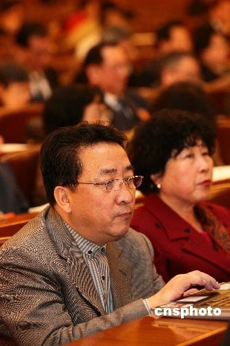 三月九日,全國(guó)政協(xié)十一屆一次會(huì)議第三次全體會(huì)議在北京人民大會(huì)堂舉行,中國(guó)文聯(lián)主席團(tuán)委員、中國(guó)曲藝家協(xié)會(huì)副主席姜昆委員(左)參加會(huì)議。中新社發(fā) 盛佳鵬 攝