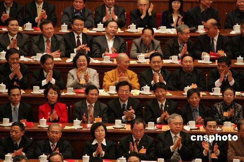 委員鼓掌慶賀全國政協(xié)新領(lǐng)導(dǎo)人當(dāng)選