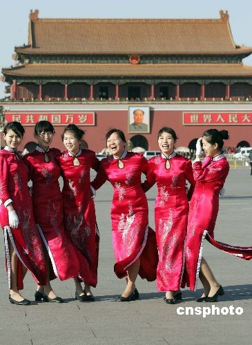 三月三日下午,全國政協(xié)十一屆一次會議在北京人民大會堂開幕,工作人員在春光明媚的天安門廣場快樂留影。中新社發(fā) 毛建軍 攝
