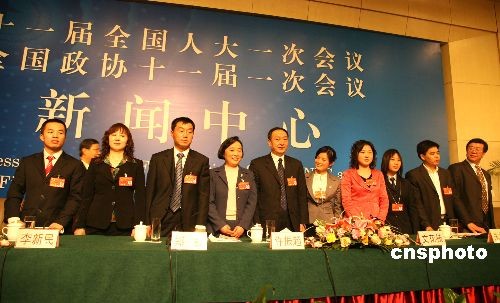 三月六日,十一屆全國人一次會議新聞中心舉行首場集體采訪,十位來自基層的全國人大代表亮相。他們中除一名是導(dǎo)游、一名是教師外,其他均為工人、農(nóng)民代表。中新社發(fā) 吳慶才 攝