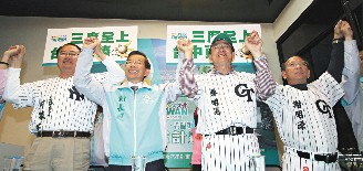 與此同時,綠營昨天在臺灣中部的助選陣容,以民進黨2008搭檔參選人謝長廷和蘇貞昌雙掛帥,民進黨前主席游錫堃等人也到場助陣。