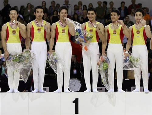 2006體操世錦賽今天凌晨決出了男子團(tuán)體賽的金牌,中國隊(duì)以277.775分超過俄羅斯的275.400分,成功衛(wèi)冕該項(xiàng)賽事的冠軍。俄羅斯隊(duì)獲得亞軍,日本隊(duì)獲得季軍。
