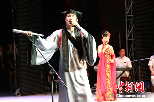 趙本山壓軸登臺,展現(xiàn)多才多藝。他先與臺灣知名演員吳忠憲、侯佩岑合作小品《演員的煩惱》,又與觀眾演唱《月亮代表我的心》,二胡獨奏《賽馬》。最后在臺灣藝人家家演唱《但愿人長久》聲中,趙本山揮毫《水調(diào)歌頭•明月幾時有》當(dāng)場義賣,作品被一位專程來臺的大陸企業(yè)家以508萬新臺幣競得,連同當(dāng)晚的演出所得,全部捐予臺灣2家慈善機構(gòu)。