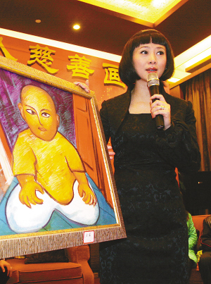 為了讓作品賣出好價錢,母親是重慶人的翁虹還熟練地用起了重慶話調(diào)動現(xiàn)場氣氛,當一位女士成功拍下一幅作品時,翁虹開心地表示:“巴適,重慶的女人就是巴適。”據(jù)了解,劉峰的8件作品在翁虹的大力鼓吹下共拍出了5.5萬元,而這筆錢也將全部捐贈給患有尿毒癥的那位女性。