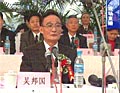 圖:國務院副總理吳邦國宣布截流儀式開始