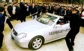 奔馳汽車在中國的廣告語是“領(lǐng)導時代,駕馭未來”,這恰如其分地亮出了奔馳汽車廠家對于中國市場的自信和自我評估。或許這并不為過,以絕對數(shù)量論,奔馳在進口豪華轎車市場一直牢據(jù)著前列;論知名度,多年以來,奔馳在人們心目中早已經(jīng)是高檔豪華轎車的代名詞和身份地位的象征。