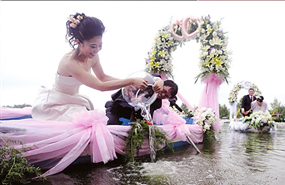 水下婚禮、自行車婚禮、熱氣球婚禮……現在婚禮上的花樣越來越多,而在婚禮現場上演一場屬于自己的愛情電影,如今成了80后白領新人的最新流行時尚……