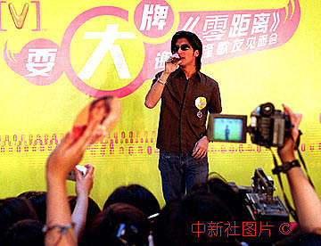歌星謝霆鋒在北京與歌迷見面。中新社記者:錢興強 2000年6月18日 08:54 ![]() 由 「V」音樂臺主辦的“零距離”謝霆鋒與北京歌迷見面會,17日在北京恒基中心舉行。上千名年輕歌迷將演出場地圍團圍住,聆聽謝霆鋒演唱的《謝謝你的愛1999》和《只要為你活一天》等歌曲。中新社記者:錢興強