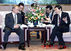 中國國務院總理朱镕基,7月18日在北京會見俄羅斯總統(tǒng)普京。中新社記者 滿會喬 攝