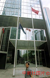 香港入境處大樓前仍降半旗,向在入境大樓縱火案中殉職的高級(jí)入境事務(wù)主任梁錦光先生致哀。中新社傳真 任海霞攝