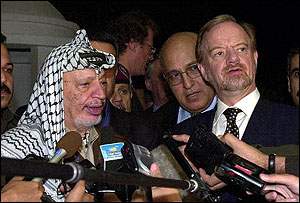 圖文:巴以美三方將舉行最高級(jí)會(huì)議 2000年10月12日 15:20 ![]() 歐盟外交事務(wù)官索拉納(左)會(huì)見約旦國王阿卜杜拉(右),討論化解以巴危機(jī)。 ![]() 英國外交大臣庫克(右)與巴勒斯坦領(lǐng)袖阿拉法特會(huì)晤,商討以巴局勢(shì)。 ![]() 以巴流血沖突今天再造成至少2人死亡。 中新網(wǎng)北京10月12日消息:經(jīng)過多日穿梭中東的“斡旋旅程”后,聯(lián)合國秘書長(zhǎng)安南宣布,以巴領(lǐng)袖已經(jīng)同意參加由美國主持的三方高層安全會(huì)議,以停止以巴暴力沖突。而隨行的聯(lián)合國發(fā)言人?斯卤硎荆材险J(rèn)為,這是終止以巴沖突,及重開以巴和平進(jìn)程會(huì)談的重要一步。 估計(jì)峰會(huì)最早會(huì)在周四舉行。 以巴沖突今天進(jìn)入第14天,多國高層官員及聯(lián)合國秘書長(zhǎng)安南不停穿梭中東地區(qū),斡旋以巴停火。 聯(lián)合國發(fā)言人表示,這項(xiàng)于1998手成立的三方安全委員會(huì)大會(huì),將首度由三方最高階層與會(huì),以解決暴力沖突問題。而會(huì)議將由以巴雙方的高級(jí)軍官及安全官員出席,由美國中情局局長(zhǎng)特內(nèi)擔(dān)任主席。預(yù)計(jì)會(huì)議將在周四展開。 安南將會(huì)前往黎巴嫩,協(xié)助救出3名被黎巴嫩真主黨擄走的以軍。另一方面,以巴雙方并未證實(shí)會(huì)出席會(huì)議。因?yàn)橐陨蓄I(lǐng)袖巴拉克與巴勒斯坦領(lǐng)袖阿拉法特均要咨詢雙方的軍官。 埃及總統(tǒng)穆巴拉克則繼續(xù)拒絕在開羅召開四方峰會(huì),認(rèn)為峰會(huì)必須在以軍愿意撤離巴勒斯坦部地區(qū),及接受成立國際調(diào)查委員會(huì),以了解事發(fā)原因。同時(shí),希望在10月21日舉行阿拉伯峰會(huì)后,以巴雙方才展開會(huì)談。而意大利則提出愿作為峰會(huì)的會(huì)談場(chǎng)地。 以巴雙方領(lǐng)袖則繼續(xù)指責(zé)對(duì)方在成立國際調(diào)查委員會(huì)的細(xì)節(jié)上不肯讓步以及以軍在沖突中濫用暴力等。巴拉克發(fā)出警告說,巴國官方近日釋放了數(shù)名伊斯蘭激進(jìn)分子,并讓他們發(fā)動(dòng)恐怖襲擊,并呼吁以色列人要小心防衛(wèi)。 盡管以巴暴力沖突規(guī)模已縮少,但今日至少又有2名巴勒斯坦人在沖突中喪生。沖突已造成100多人死亡,數(shù)以千計(jì)的人受傷。(圖文據(jù)外電) |