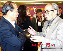 著名電影演員王鐵成和葛存壯出席中國(guó)金雞百花電影節(jié)頒獎(jiǎng)儀式 2000年11月21日 22:06 ![]()