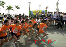 圖片:澳門中華總商會青年委員會舉行一系列慶祝活動 2000年12月18日 15:42 ![]() 澳門回歸一周年到來之際,澳門中華總商會青年委員會十七日舉行一系列慶;顒,圖為在觀音像前舉辦的環(huán)湖長跑比賽。中新社傳真 宗金柱攝