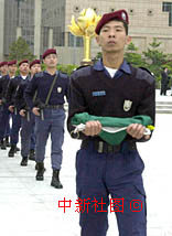 澳門(mén)警察手捧區(qū)旗在蓮花廣場(chǎng)彩排 2000年12月18日 15:58 ![]() 澳門(mén)警察手捧區(qū)旗在蓮花廣場(chǎng)彩排。澳門(mén)特區(qū)政府將于十二月二十日舉行盛大的升旗儀式,以慶祝回歸祖國(guó)一周年,圖為當(dāng)?shù)鼐焓迦帐峙鯀^(qū)旗在蓮花廣場(chǎng)彩排。中新社傳真宗金柱攝