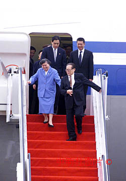 圖文:國家主席江澤民抵達澳門 2000年12月19日 17:37 ![]() 中國國家主席江澤民19日抵達澳門特區(qū)出席慶祝澳門回歸一周年慶典活動,中國邊防海警炮艇清晨在澳門海域戒備,作好安全保護工作。中新社傳真洪少葵攝 中新社澳門十二月十九日電(記者 陳立宇 趙健)中共中央總書記、國家主席、中央軍委主席江澤民乘坐的專機于今天十六點二十八分抵達澳門國際機場,江澤民主席和夫人王冶坪在澳門特別行政區(qū)行政長官何厚鏵的陪同下步下舷梯,踏上了澳門這塊剛剛回歸祖國一周年的土地。 T型的鮮紅地毯從舷梯一直鋪到江主席的座車前。歡迎人群列隊站立在地毯旁,“熱烈歡迎江澤民主席和夫人蒞臨澳門”的大型橫幅十分醒目。 一百五十多位小朋友以及一百一十多位澳門市民冒著細雨,揮舞著國旗、區(qū)旗和花束,歡迎江澤民主席一行的到來。 伴隨著澳門警察銀樂隊演奏的歡迎曲,澳門培正中學(xué)小學(xué)部十歲的女學(xué)生容韻琳和濠江中學(xué)小學(xué)部九歲的男學(xué)生岑啟彥,向江澤民主席和夫人王冶坪獻上了鮮花。滿面笑容的江澤民主席再次親吻了去年也曾向他獻花的容韻琳小姑娘,歡迎人群中響起熱烈的掌聲。 江澤民主席同前來迎接的全國政協(xié)副主席馬萬祺、何厚鏵夫人劉渭楨以及澳門特別行政區(qū)主要官員曹其真、岑浩輝、陳麗敏、譚伯源、張國華、崔世安、歐文龍、張裕、蔡美莉、何超明、白英偉、徐禮恒等一一握手。 中央人民政府駐澳門特別行政區(qū)聯(lián)絡(luò)辦公室主任王啟人、外交部駐澳門特別行政區(qū)特派員原燾、中國人民解放軍駐澳部隊司令員劉粵軍以及先期抵達的公安部副部長田期玉、國務(wù)院港澳辦副主任陳佐洱、國務(wù)院新聞辦副主任李冰等也到機場迎接江主席一行。 江澤民主席的主要陪同人員:國務(wù)院副總理錢其琛夫婦、中國人民解放軍總政治部主任于永波上將、中共中央辦公廳主任王剛、國務(wù)院港澳辦主任廖暉等人同機抵達。 江澤民此行將在澳門停留至二十一日,參加一系列慶祝澳門回歸祖國一周年的活動。 |