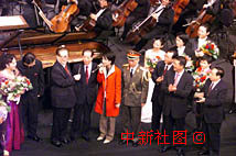 新聞組照:江澤民出席澳門(mén)回歸一周年慶祝大會(huì)并作重要講話(huà) 2000年12月20日 14:06 ![]() 國(guó)家主席江澤民二十日出席澳門(mén)回歸一周年慶祝大會(huì)時(shí)向各界代表?yè)]手致意。中新社傳真 宗金柱 攝 ![]() 國(guó)家主席江澤民二十日出席澳門(mén)回歸一周年慶祝大會(huì)并作重要講話(huà)。中新社傳真 宗金柱 攝 ![]() 國(guó)家主席江澤民二十日在澳門(mén)回歸一周年慶祝大會(huì)文藝演出后走上舞臺(tái),提議全場(chǎng)齊唱《洪湖水 浪打浪》。中新社傳真 滿(mǎn)會(huì)喬 攝 |