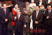 圖片:江澤民在文藝演出后走上舞臺(tái)高歌三曲 2000年12月20日 16:10 國(guó)家主席江澤民20日在慶祝澳門(mén)回歸祖國(guó)一周年慶祝大會(huì)文藝演出后走上舞臺(tái),高歌三曲——《洪湖水》、《教我如何不想她》、《歌唱祖國(guó)》,贏得滿場(chǎng)掌聲。中新社傳真 滿會(huì)喬 攝