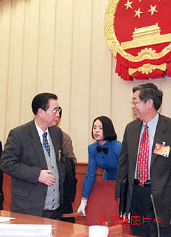 李鵬主持全國人大主席團(tuán)第二次會(huì)議 2000年3月12日 09:35 ![]()