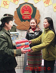 藝術家慰問保衛(wèi)兩會的公安干警 2000年3月7日 08:52 ![]()