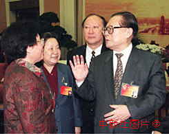江澤民主席到全國(guó)人大上海代表團(tuán)參加小組討論 2000年3月8日 08:33 ![]()