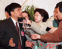 私營(yíng)企業(yè)家劉永好(希望集團(tuán)總裁、中國(guó)民生銀行副董事長(zhǎng)、全國(guó)工商聯(lián)副主席)七日在全國(guó)政協(xié)召開(kāi)的記者招待會(huì)上,成為新聞媒體關(guān)注的熱點(diǎn)人物。作者:陳勇