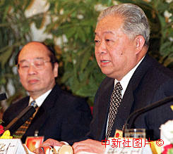 國(guó)家經(jīng)濟(jì)貿(mào)易委員會(huì)主任盛華仁(右)七日在九屆全國(guó)人大三次會(huì)議記者招待會(huì)上,就國(guó)有企業(yè)改革等問(wèn)題答中外記者問(wèn)。作者:王麗南