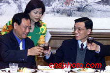 圖文:李炳才會見國民黨、新黨“三通”參訪團 2001年1月6日 10:27 ![]() 國務院臺灣事務辦公室副主任李炳才5日在北京釣魚臺國賓館設午宴,歡迎由何智輝率領的臺灣國民黨“三通”參訪團。中新社記者 毛建軍 攝