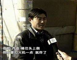 圖文:一名“法輪功”頑固分子16日在京自焚身亡 2001年2月16日 19:06 慘劇現(xiàn)場 目擊者描述慘劇發(fā)生情況(電視截屏畫面) 中新網(wǎng)北京2月16日消息:受李洪志一再叫囂的“升天圓滿”、“忍無可忍”的妖言煽動蠱惑,今天12時許,一名男性“法輪功”頑固分子在北京市海淀區(qū)萬壽路南口路旁,點燃汽油自焚身亡。 公安機關(guān)初步查明,這名自焚者是來自湖南省常德市的“法輪功”頑固分子,名叫譚一輝,男,漢族,初中文化程度,未婚;家住湖南省常德市城北建民巷117號;身份證號碼為432401750805303。他是2月15日乘坐長沙至北京西的T88次空調(diào)硬座特快列車來京的。 |