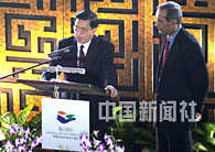 中國外經(jīng)貿(mào)部副部長龍永圖二十六日在海南省博鰲亞洲論壇舉行的午餐會上,就中國加入世貿(mào)組織的現(xiàn)狀與前景發(fā)表演講,并回答各國嘉賓的問題。中新社記者 賈國榮 攝
