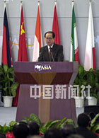 錢(qián)其琛副總理27日在海南博鰲亞洲論壇成立大會(huì)上講話,指出亞洲仍然是世界上經(jīng)濟(jì)增長(zhǎng)最快和最具發(fā)展活力的地區(qū)之一。中新社記者 賈國(guó)榮 攝