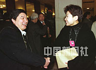 全國政協(xié)委員,著名歌唱家董文華和著名運(yùn)動(dòng)員王義夫在政協(xié)開幕式上喜相逢。中新社記者 錢興強(qiáng) 攝