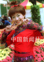 藝員岑寶兒12日穿著民族服裝出席香港花卉展覽「春花樂韻耀香江」攝影比賽當(dāng)模特,造型活潑可愛。中新社傳真 鄧慶樂 攝
