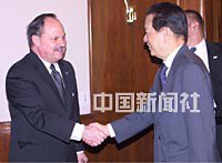圖:錢其琛會(huì)見(jiàn)美工商金融界人士 2001年3月20日 10:25 ![]() 國(guó)務(wù)院副總理錢其琛十九日在紐約人壽保險(xiǎn)公司會(huì)見(jiàn)了美國(guó)工商金融界人士。美國(guó)商會(huì)負(fù)責(zé)人安德?tīng)柎砉ど探鹑诮鐨g迎錢其琛訪美,并表示,美工商金融界堅(jiān)定支持發(fā)展對(duì)華經(jīng)貿(mào)關(guān)系,希望美中關(guān)系在新世紀(jì)得到更大發(fā)展。中新社記者 陳建 攝 |