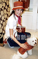 美國皮具品牌公司邀請香港演員蒙嘉慧與小狗同場演繹,推銷今季服飾與寵物系列。中新社傳真 王順 攝