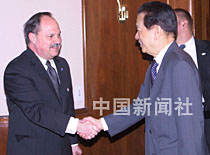 國(guó)務(wù)院副總理錢其琛十九日在紐約人壽保險(xiǎn)公司會(huì)見(jiàn)了美國(guó)工商金融界人士。美國(guó)商會(huì)負(fù)責(zé)人安德?tīng)柎砉ど探鹑诮鐨g迎錢其琛訪美,并表示,美工商金融界堅(jiān)定支持發(fā)展對(duì)華經(jīng)貿(mào)關(guān)系,希望美中關(guān)系在新世紀(jì)得到更大發(fā)展。中新社圖 陳建 攝