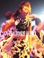 2000年中國歌曲排行榜頒獎(jiǎng)晚會(huì),二十三日晚在頒獎(jiǎng)裝飾一新的首都體育館舉行,并評出中國十大金曲。 圖為晚會(huì)載歌載舞的熱鬧場面。 中新社記者 錢興強(qiáng) 攝
