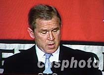 美國(guó)總統(tǒng)小布什日前在華盛頓首次表示遺憾,他是在出席活動(dòng)時(shí)首先講話,對(duì)美國(guó)軍用偵察機(jī)撞毀中國(guó)戰(zhàn)機(jī),造成一名中國(guó)飛行員失蹤表示遺憾的態(tài)度。中新社圖