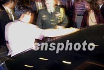 美國(guó)駐華使館官員席樂高等人七日晚十時(shí)許在?谖娜A大酒店乘坐中方安排的車輛,第三次與美國(guó)軍用偵察機(jī)機(jī)組人員見面。中新社記者 賈國(guó)榮 攝
