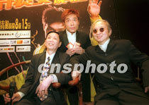 歌星許志安9日在香港出席其「借你耳朵聽許志安演唱會」記者會,許志安感謝張耀榮(左)、黃柏高(右)在演藝事業(yè)上對他的支持。中新社傳真 鄧慶樂 攝