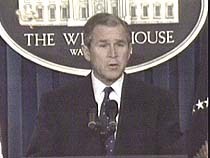 美國總統(tǒng)布什就事件最新進展發(fā)表講話(全文) 2001年4月11日 21:09 ![]() 布什就事件最新進展發(fā)表講話 中新網(wǎng)華盛頓4月11日消息:針對撞機事件最新進展,美國總統(tǒng)喬治·布什在華盛頓剛剛發(fā)表了講話。 他說,撞機事件使中美兩國都經(jīng)歷了一個困難時期。他表示,相信全美人民與他一樣對失蹤中國飛行員王偉感到悲傷,并為王偉的妻子和兒子祈禱。 他說,24名美國機組人員即將返回美國,布什還贊揚了駐華大使普理赫及使館人員在事件中的努力。 喬治·布什并沒有回答記者問題,發(fā)言后便離去。 以下是布什講話全文: 我很高興能夠告知美國人民,把我們24名男女軍人從海南島接回國的計劃正在進行當中。 今天早晨,中國政府向我美國大使確認機組人員很快就可離開。我們正在安排接他們回國的事宜。 這對于兩國來說都是一段艱難的處境。我知道,美國人民和我一樣都對中國飛行員失去生命表達了悲哀。 我對我們駐中國大使約瑟夫普里赫的辛勤工作和大使館全體工作人員為解決問題所做的不懈努力表示感謝。美國人民,他們的家人和我都為我們的機組人員感到驕傲,我們期待著歡迎他們回家! "I am pleased to be able to tell the American people that plans are under way to bring home our 24 service men and women from Hainan Island. This morning the Chinese government assured our American ambassador that the crew would leave promptly. We are working on arrangements to pick them up and to bring them home. This has been a difficult situation for both our countries. I know that the American people join me in expressing sorrow for the loss of life of a Chinese pilot. Our prayers are with his wife and his child. I appreciate the hard work of our ambassador to China, Joseph Prueher and his entire embassy team who worked tirelessly to solve this situation. The American people, their families and I are proud of our crew and we look forward to welcoming them home. |