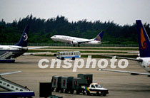 一架美國租用的客機(jī)十二日凌晨七時三十九分從中國海南省?谑忻捞m機(jī)場起飛離地,搭載美國軍用偵察機(jī)的機(jī)組人員離境回國。中新社記者 賈國榮 攝