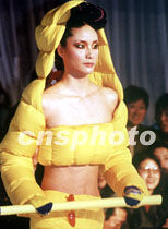 中國名模陳娟紅,日前在北京舉辦的第九屆中國國際服裝服飾博覽會上,展示“南極人”羽絨服飾作品。中新社記者 錢興強(qiáng) 攝