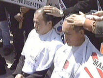 韓國民眾當(dāng)眾剃頭抗議日本通過的歷史教科書