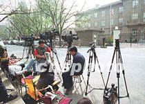 四月十八日,中美“關(guān)于美國軍用偵察機撞毀中國軍用飛機事件及相關(guān)問題的談判”開始在北京舉行。美國駐華大使館再次成為媒體關(guān)注的焦點。中新社圖 史利 攝