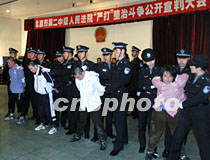 北京第二中級人民法院二十日召開“嚴打”整治斗爭公判大會,一批嚴重刑事罪犯今日伏法。中新社圖 李剛 攝